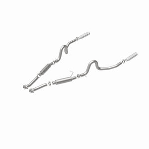 The MagnaFlow 1999-2004 Ford Mustang Competition Series Cat-Back Performance Exhaust System 15673 brings an aggressive, attention-grabbing edge to the deep resonant exhaust note we're so well known for. This exhaust kit is designed to enhance your 4.6L 1999-2004 Ford Mustang with dyno-proven performance made possible thanks to fast-flowing mandrel bent 2.5in. main piping and 2 Straight-Through mufflers ending in a Dual Split Rear exit with 3.5in. Polished Clamp-On Single Wall Angle Cut Cut Edge tips featuring a sporty finish. The exhaust system's cat-back layout replaces your ride's exhaust system from near the catalytic converter on back. Exhaust system 15673 is engineered to make your vehicle's engine produce Aggressive exterior and Moderate interior sound levels, befitting its competition-oriented design. 15673's direct-fit design makes installation a breeze thanks to the use of advanced 3D scanning techniques. This performance exhaust system is made of 100% durable and corrosion-resistant stainless steel and produced using CNC precision robotic manufacturing, all backed by MagnaFlow's limited lifetime warranty. Please check to ensure compliance with local noise regulations.