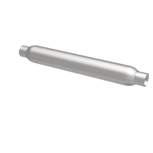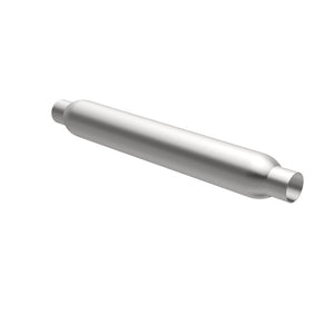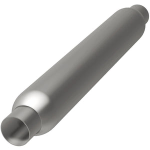 The MagnaFlow 4in. Round Glasspack Performance Exhaust Muffler 18146 enhances your ride with the deep, classic sound that glasspack mufflers are known for. The round muffler body features a free-flowing reversible straight-through 2.5/2.5in. diameter configuration and single stage packing with a satin finish. This weight-optimized glasspack muffler is engineered to bring out the inner hot rod in your ride with plenty of volume and dyno-proven performance, so please check to ensure compliance with local noise regulations. 18146 offers flexibility when it comes to installation thanks to its universal design, however, professional installation is recommended. Muffler 18146 is made of corrosion resistant aluminized steel and produced using CNC precision robotic manufacturing techniques, all backed by MagnaFlow's 90-day limited construction warranty.