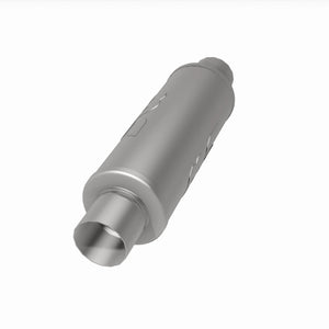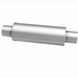 The MagnaFlow 5in. Round Straight-Through Performance Exhaust Muffler 14867 is engineered to enhance your vehicle with our signature exhaust sound and dyno-proven performance thanks to its free-flowing straight-through perforated stainless steel core wrapped in stainless steel mesh and acoustic fiber fill. The weight-optimized, reversible, universal 3/3in. diameter inlet/outlet layout and 5x5x14in. round body shape offer flexible installation options to fit the spacing requirements of your ride. Professional installation is highly recommended. 14867 features a premium brushed finish. Muffler 14867 is made of durable, corrosion resistant stainless steel and produced using advanced CNC precision robotic manufacturing techniques, all backed by MagnaFlow's limited lifetime warranty.