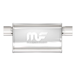 The MagnaFlow 5 X 8in. Oval Straight-Through Performance Exhaust Muffler 14211 brings our signature sound and dyno-proven performance to your ride with a free-flowing straight-through perforated stainless steel core wrapped in stainless steel mesh and acoustic fiber fill, and a weight-optimized, reversible 2.5/2.5in. diameter inlet/outlet Straight-Through layout. Muffler 14211s 5x8x14in. oval-shaped body features a premium, brushed finish for an elevated aesthetic that matches the enhanced exhaust note and performance that this muffler brings to your ride. The universal design allows for flexible placement of 14211 within your exhaust system to meet the specific spacing requirements of your vehicle, although professional installation is highly recommended. 14211 is made of durable, corrosion resistant stainless steel and produced using cutting-edge CNC precision robotic manufacturing techniques, all backed by MagnaFlow's limited lifetime construction warranty.