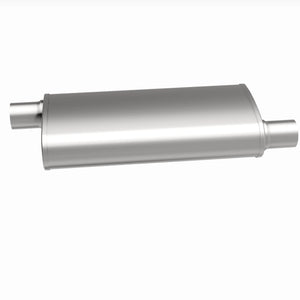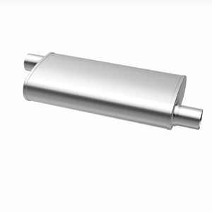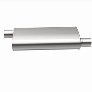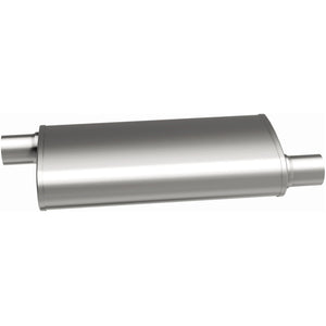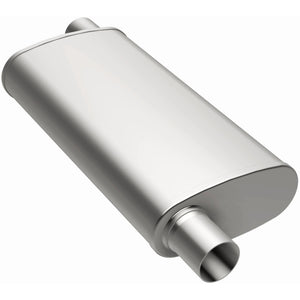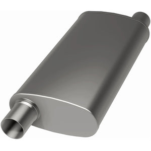 The MagnaFlow XL 4 X 9in. Oval Multi-Chamber Performance Exhaust Muffler 13266 features a straight-through, weight-optimized reversible design with a perforated stainless steel core featuring baffles and tuning gates, enabling it to deliver the powerful signature sound and dyno-proven performance that's made MagnaFlow a household name. Muffler 13266's oval-shaped, 4x9x18in. body and universal 2.5/2.5in. diameter inlet/outlet layout enables flexible installation options to match the spacing requirements of your vehicle. Professional installation is highly recommended. 13266 is produced using advanced CNC precision robotic manufacturing techniques and features durable, corrosion resistant stainless-steel construction, all backed by MagnaFlow's limited lifetime warranty.