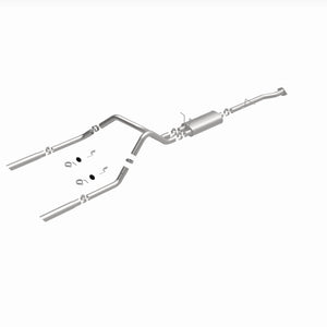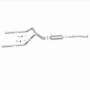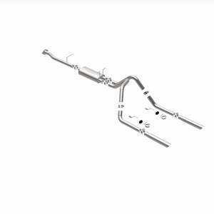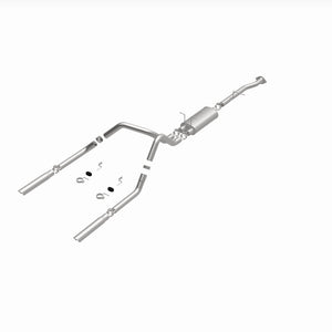The MagnaFlow Street Series Cat-Back Performance Exhaust System 15796 brings out the personality of your Truck with our signature resonant, powerful engine tone and dyno-proven performance. Thanks to its fast-flowing, mandrel bent 2.5in. main piping and 1 Straight-Through mufflers ending in a Dual Split Rear exit with 3in. Polished Clamp-On Single Wall Angle Cut Cut Edge tips, this Truck exhaust kit has the performance chops to match its sporty sound and appearance. Upgrade your ride to the next level with an exhaust that has the pipes to put other Truck's to shame. With this system your vehicle will be producing Aggressive exterior and Moderate interior sound levels while leaving other cars and trucks feeling envious at every stoplight. Exhaust kit 15796 features a cat-back layout that replaces your ride's stock exhaust components from near the catalytic converter on back. Extensive 3D scanning during development has resulted in a direct-fit design that you can easily install yourself. 15796 is produced using CNC precision robotic manufacturing techniques and is backed by MagnaFlow's 1-year limited finish warranty and limited lifetime construction warranty.