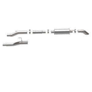 The MagnaFlow Off-Road Pro Series Cat-Back Performance Exhaust System 17107 brings additional off-roading prowess and our deep signature exhaust note to your Truck with a weight-optimized, dyno-tested, corrosion resistant and durable stainless steel design engineered to closely hug the undercarriage for improved ground clearance. Exhaust kit 17107 is engineered to produce Very Aggressive exterior and Aggressive interior sound levels. Extensive 3D scanning was used during the development of this Truck exhaust system to create a direct-fit design, enabling a do-it-yourself installation process. 17107's emissions-legal cat-back design replaces all your truck's exhaust components from the catalytic converter on back with its 3in. diameter mandrel bent main piping that passes through 1 Straight-Through mufflers before ending in a turndown before rear axle exit with 3in. Satin Clamp-On Single Wall Turndown Cut Edge tips. Exhaust system 17107 is produced using advanced CNC precision robotic manufacturing techniques and backed by MagnaFlow's limited lifetime warranty.