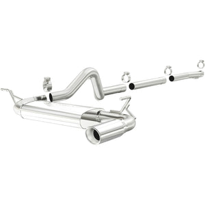 The MagnaFlow 2007-2011 Jeep Wrangler Street Series Cat-Back Performance Exhaust System 16751 brings out the personality of your 3.8L 2007-2011 Jeep Wrangler with our signature resonant, powerful engine tone and dyno-proven performance. Thanks to its fast-flowing, mandrel bent 2.5in. main piping and 1 Straight-Through mufflers ending in a Single Straight Passenger Side Rear exit with 3.5in. Polished Welded-On Double Wall Angle Cut Rolled Edge tips, this Jeep Wrangler exhaust kit has the performance chops to match its sporty sound and appearance. Upgrade your ride to the next level with an exhaust that has the pipes to put other Jeep Wrangler's to shame. With this system your vehicle will be producing Moderate exterior and Mild interior sound levels while leaving other cars and trucks feeling envious at every stoplight. Exhaust kit 16751 features a cat-back layout that replaces your ride's stock exhaust components from near the catalytic converter on back. Extensive 3D scanning during development has resulted in a direct-fit design that you can easily install yourself. 16751 is produced using CNC precision robotic manufacturing techniques and is backed by MagnaFlow's 1-year limited finish warranty and limited lifetime construction warranty.