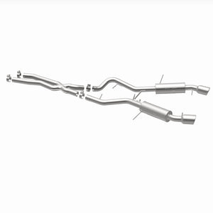 The MagnaFlow Sport Series Cat-Back Performance Exhaust System 16542 enhances your 3.0L 2007-2010 BMW with an aggressive character that is sure to help you stand out from the other BMW you encounter on the street. With its 2.5in. diameter fast-flowing mandrel bent main piping that passes through 2 Straight-Through mufflers before ending in a Dual Split Rear exit with 4in. Polished Welded-On Double Wall Angle Cut Rolled Edge tips, this dyno-proven BMW exhaust system refuses to be ignored. As such, 16542 is tuned to produce our powerful, resonant signature exhaust note at Aggressive exterior and Moderate interior sound levels, so please check to ensure compliance with local noise regulations. The system's cat-back design replaces all your import's stock exhaust components from the catalytic converter on back. Extensive 3D scanning and CNC precision robotic manufacturing techniques are used to ensure that your exhaust system fits perfectly with just a simple do-it-yourself installation process. The durable, corrosion resistant stainless steel construction of 16542 is backed by MagnaFlow's limited lifetime warranty.