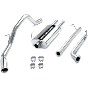 The MagnaFlow 2007-2008 Toyota Tundra Street Series Cat-Back Performance Exhaust System 16753 brings out the personality of your 5.7L 2007-2008 Toyota Tundra with our signature resonant, powerful engine tone and dyno-proven performance. Thanks to its fast-flowing, mandrel bent 3in. main piping and 1 Straight-Through mufflers ending in a Single Passenger Side Rear exit with 4in. Polished Welded-On Double Wall Angle Cut Rolled Edge tips, this Toyota Tundra exhaust kit has the performance chops to match its sporty sound and appearance. Upgrade your ride to the next level with an exhaust that has the pipes to put other Toyota Tundra's to shame. With this system your vehicle will be producing Moderate exterior and Mild interior sound levels while leaving other cars and trucks feeling envious at every stoplight. Exhaust kit 16753 features a cat-back layout that replaces your ride's stock exhaust components from near the catalytic converter on back. Extensive 3D scanning during development has resulted in a direct-fit design that you can easily install yourself. 16753 is produced using CNC precision robotic manufacturing techniques and is backed by MagnaFlow's 1-year limited finish warranty and limited lifetime construction warranty.