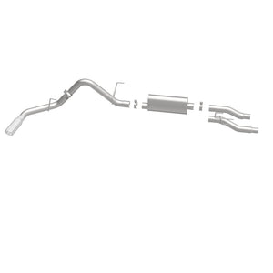 The MagnaFlow Street Series Cat-Back Performance Exhaust System 16518 brings out the personality of your Truck with our signature resonant, powerful engine tone and dyno-proven performance. Thanks to its fast-flowing, mandrel bent 3in. main piping and 1 Straight-Through mufflers ending in a Single Passenger Side Rear exit with 4in. Polished Welded-On Double Wall Angle Cut Rolled Edge tips, this Truck exhaust kit has the performance chops to match its sporty sound and appearance. Upgrade your ride to the next level with an exhaust that has the pipes to put other Truck's to shame. With this system your vehicle will be producing Moderate exterior and Mild interior sound levels while leaving other cars and trucks feeling envious at every stoplight. Exhaust kit 16518 features a cat-back layout that replaces your ride's stock exhaust components from near the catalytic converter on back. Extensive 3D scanning during development has resulted in a direct-fit design that you can easily install yourself. 16518 is produced using CNC precision robotic manufacturing techniques and is backed by MagnaFlow's 1-year limited finish warranty and limited lifetime construction warranty.