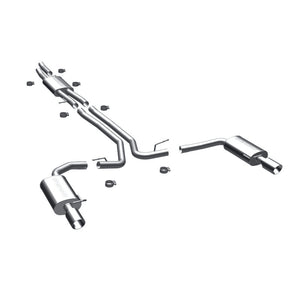 The MagnaFlow 2010-2014 Ford Taurus Street Series Cat-Back Performance Exhaust System 15769 brings out the personality of your 3.5L 2010-2014 Ford Taurus with our signature resonant, powerful engine tone and dyno-proven performance. Thanks to its fast-flowing, mandrel bent 2.5in. main piping and 3 Straight-Through mufflers ending in a Dual Split Rear exit with 4in. Polished Welded-On Double Wall Angle Cut Folded Edge tips, this Ford Taurus exhaust kit has the performance chops to match its sporty sound and appearance. Upgrade your ride to the next level with an exhaust that has the pipes to put other Ford Taurus's to shame. With this system your vehicle will be producing Moderate exterior and Mild interior sound levels while leaving other cars and trucks feeling envious at every stoplight. Exhaust kit 15769 features a cat-back layout that replaces your ride's stock exhaust components from near the catalytic converter on back. Extensive 3D scanning during development has resulted in a direct-fit design that you can easily install yourself. 15769 is produced using CNC precision robotic manufacturing techniques and is backed by MagnaFlow's 1-year limited finish warranty and limited lifetime construction warranty.