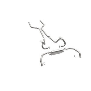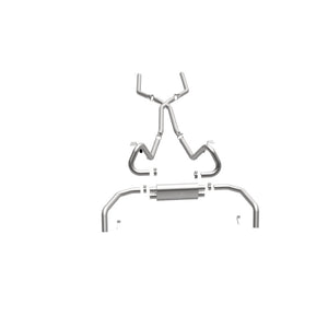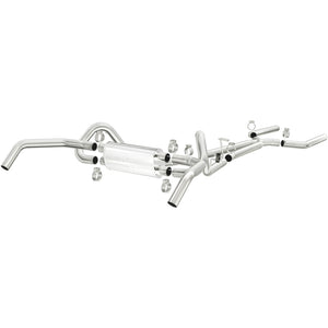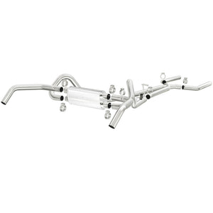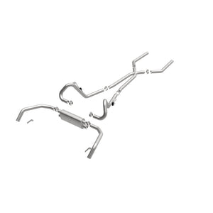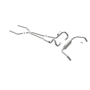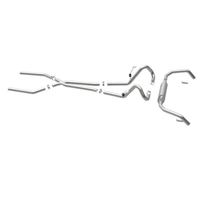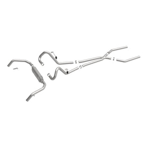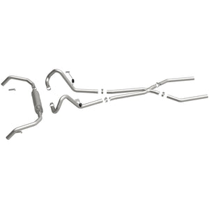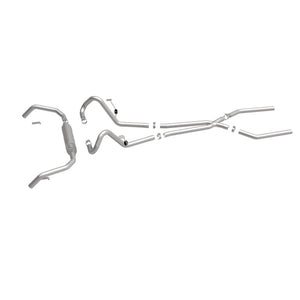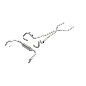 The MagnaFlow Street Series Crossmember-Back Performance Exhaust System 15895 brings enhanced engine sound and dyno-proven performance to your muscle car with a healthy helping of our deep, resonant signature exhaust note at Moderate exterior and Mild interior sound levels. Thanks to its durable, corrosion resistant stainless steel design, this exhaust system will handle whatever tarmac you decide to leave your mark on. This performance exhaust kit features a crossmember-back layout designed to replace your exhaust system from the crossmember on back. With its fast-flowing, mandrel bent 2.5in. main piping and 1 Straight-Through mufflers ending in a Dual Split Rear exit that you can enhance with tips of your choosing, your muscle car will be sounding as awesome as it looks. Extensive 3D scanning during development has resulted in a direct-fit design that you can easily install yourself. 15895 is produced using CNC precision robotic manufacturing techniques and is backed by MagnaFlow's limited lifetime construction warranty.