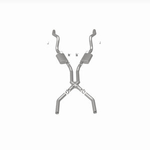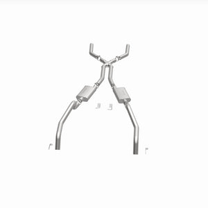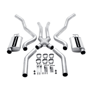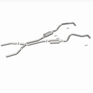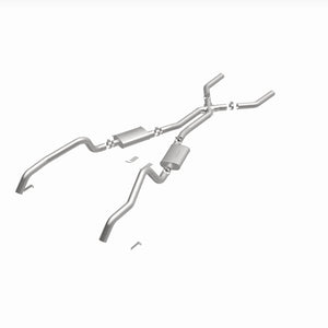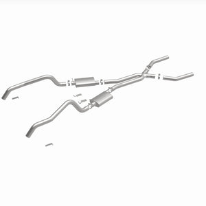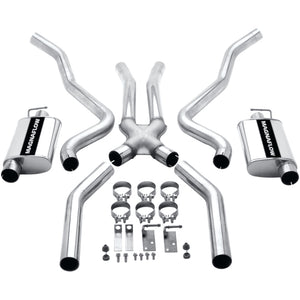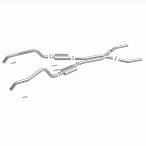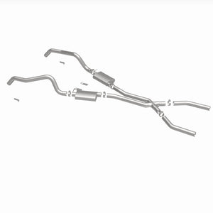 The MagnaFlow Street Series Crossmember-Back Performance Exhaust System 15852 brings enhanced engine sound and dyno-proven performance to your muscle car with a healthy helping of our deep, resonant signature exhaust note at Aggressive exterior and Moderate interior sound levels. Thanks to its durable, corrosion resistant stainless steel design, this exhaust system will handle whatever tarmac you decide to leave your mark on. This performance exhaust kit features a crossmember-back layout designed to replace your exhaust system from the crossmember on back. With its fast-flowing, mandrel bent 3in. main piping and 2 Straight-Through mufflers ending in a Dual Split Rear exit that you can enhance with tips of your choosing, your muscle car will be sounding as awesome as it looks. Extensive 3D scanning during development has resulted in a direct-fit design that you can easily install yourself. 15852 is produced using CNC precision robotic manufacturing techniques and is backed by MagnaFlow's limited lifetime construction warranty.