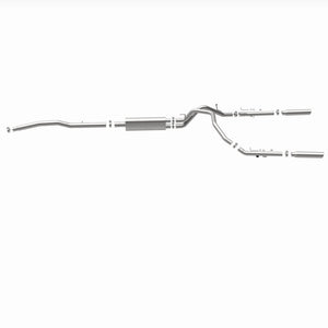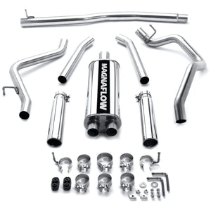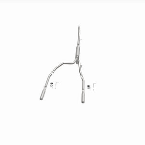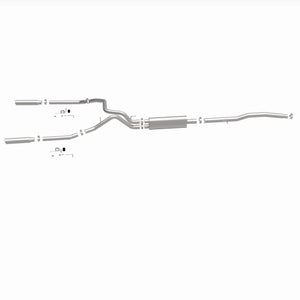 The MagnaFlow Street Series Cat-Back Performance Exhaust System 16622 brings out the personality of your Truck with our signature resonant, powerful engine tone and dyno-proven performance. Thanks to its fast-flowing, mandrel bent 3in. main piping and 1 Straight-Through mufflers ending in a Dual Split Rear exit with 3.5in. Polished Clamp-On Single Wall Angle Cut Rolled Edge tips, this Truck exhaust kit has the performance chops to match its sporty sound and appearance. Upgrade your ride to the next level with an exhaust that has the pipes to put other Truck's to shame. With this system your vehicle will be producing Aggressive exterior and Moderate interior sound levels while leaving other cars and trucks feeling envious at every stoplight. Exhaust kit 16622 features a cat-back layout that replaces your ride's stock exhaust components from near the catalytic converter on back. Extensive 3D scanning during development has resulted in a direct-fit design that you can easily install yourself. 16622 is produced using CNC precision robotic manufacturing techniques and is backed by MagnaFlow's 1-year limited finish warranty and limited lifetime construction warranty.