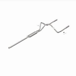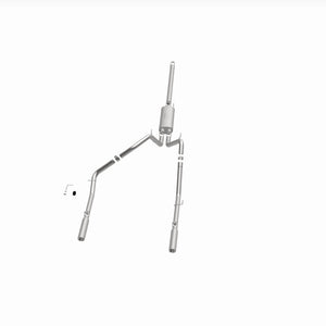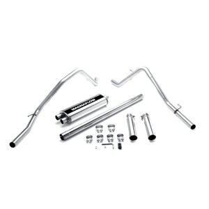 The MagnaFlow 2006-2007 Dodge Ram 1500 Street Series Cat-Back Performance Exhaust System 16700 brings out the personality of your 5.7L 2006-2007 Dodge Ram 1500 with our signature resonant, powerful engine tone and dyno-proven performance. Thanks to its fast-flowing, mandrel bent 3in. main piping and 1 Straight-Through mufflers ending in a Dual Split Rear exit with 3.5in. Polished Clamp-On Single Wall Angle Cut Rolled Edge tips, this Dodge Ram 1500 exhaust kit has the performance chops to match its sporty sound and appearance. Upgrade your ride to the next level with an exhaust that has the pipes to put other Dodge Ram 1500's to shame. With this system your vehicle will be producing Aggressive exterior and Moderate interior sound levels while leaving other cars and trucks feeling envious at every stoplight. Exhaust kit 16700 features a cat-back layout that replaces your ride's stock exhaust components from near the catalytic converter on back. Extensive 3D scanning during development has resulted in a direct-fit design that you can easily install yourself. 16700 is produced using CNC precision robotic manufacturing techniques and is backed by MagnaFlow's 1-year limited finish warranty and limited lifetime construction warranty.