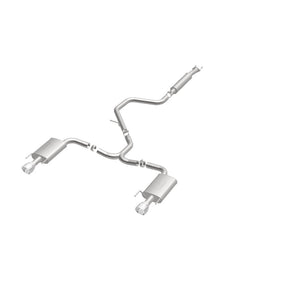 The MagnaFlow 2015 Chevrolet Malibu Street Series Cat-Back Performance Exhaust System 19024 brings out the personality of your 2.0L, 2.5L 2015-2015 Chevrolet Malibu with our signature resonant, powerful engine tone and dyno-proven performance. Thanks to its fast-flowing, mandrel bent 2.5in. main piping and 3 Straight-Through mufflers ending in a Dual Split Rear exit with 4.5in. Polished Welded-On Double Wall Angle Cut Folded Edge tips, this Chevrolet Malibu exhaust kit has the performance chops to match its sporty sound and appearance. Upgrade your ride to the next level with an exhaust that has the pipes to put other Chevrolet Malibu's to shame. With this system your vehicle will be producing Moderate exterior and Mild interior sound levels while leaving other cars and trucks feeling envious at every stoplight. Exhaust kit 19024 features a cat-back layout that replaces your ride's stock exhaust components from near the catalytic converter on back. Extensive 3D scanning during development has resulted in a direct-fit design that you can easily install yourself. 19024 is produced using CNC precision robotic manufacturing techniques and is backed by MagnaFlow's 1-year limited finish warranty and limited lifetime construction warranty.