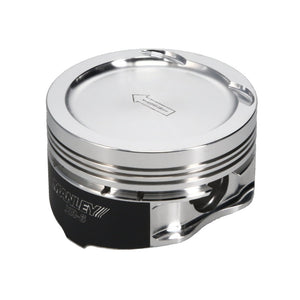 2618 Alloy Forgings: We use domestic 2618 alloy forgings, ensuring superior strength and performance.Chrome Moly Wrist Pins: Premium Chrome Moly wrist pins come standard with our Standard Series Pistons. For select SKUs, we offer wrist pin upgrades to 9310 and Turbo Tuff/DLC alloys, providing additional durability.Exacting Ring Lands and Grooves: We adhere to strict standards for piston ring lands and grooves, resulting in enhanced ring seal and more power.Cam and Barrel Profiles: Our pistons boast cam and barrel (skirt) profiles that generate substantial power while being gentle on cylinder walls.Unique Fixturing: Manley's unique fixturing allows for skirt turning and ring groove machining in a single operation, ensuring ultimate ring groove to skirt squareness.