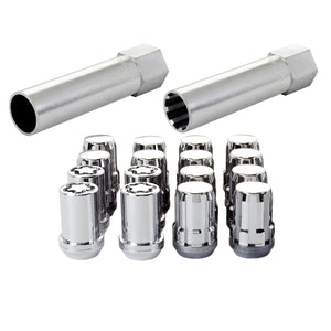 The convenient way to order Tuner wheel locks and lug nuts; contains all the wheel locks and lug nuts that you need to install 4 wheels and tires.; Why settle for ordinary lug nuts? SplineDrive Lug Nuts combine style and performance.; A no-compromise design engineered to fit small diameter recesses in Tuner style wheels.; SplineDrive lug nuts offer closed-end design, maximum gripping power, more stud engagement and a greater seating surface than socket style lug nuts.; In addition they are 30% lighter in weight.; Like all McGard lug nuts, the chrome plating is guaranteed for life not to rust, chip or peel.; The easy-to-use, one-piece wheel locks function like regular lug nuts, but require a special key tool for installation and removal.; The computer generated key designs allow for an infinite number of key patterns.; McGard manufactures wheel locks and lug nuts in the USA to meet or exceed O.E.M.; standards for safety and durability.; Every lug nut and wheel lock is fully machined from restricted chemistry steel made specifically for McGard and through-hardened for its unsurpassed level of safety.; For use on aluminum cone seat wheels only.; Clamshell Packaging.; This product may contain globally sourced materials/components. Installation Instructions Installation Instructions Installation Instructions Installation Instructions