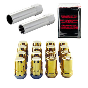 The convenient way to order Tuner wheel locks and lug nuts; contains all the hardware that you need to install 4 wheels and tires.; Why settle for ordinary lug nuts? SplineDrive Lug Nuts combine style and performance.; A no-compromise design engineered to fit small diameter recesses in Tuner style wheels.; SplineDrive lug nuts offer closed-end design, maximum gripping power, more stud engagement and a greater seating surface than socket style lug nuts.; In addition they are 30% lighter in weight.; Like all McGard lug nuts, the chrome with gold PVD plating is guaranteed for life not to rust, chip or peel.; The easy-to-use, one-piece wheel locks function like regular lug nuts, but require a special key tool for installation and removal.; The computer generated key designs allow for an infinite number of key patterns.; McGard manufactures wheel locks and lug nuts in the USA to meet or exceed O.E.M.; standards for safety and durability.; Every lug nut and wheel lock is fully machined from restricted chemistry steel made specifically for McGard and through-hardened for its unsurpassed level of safety.; For use on aluminum cone seat wheels only.; This product may contain globally sourced materials/components.