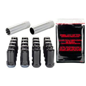 The convenient way to order Tuner wheel locks and lug nuts; contains all the hardware that you need to install 4 wheels and tires.; Why settle for ordinary lug nuts? SplineDrive Lug Nuts combine style and performance.; A no-compromise design engineered to fit small diameter recesses in Tuner style wheels.; SplineDrive lug nuts offer closed-end design, maximum gripping power, more stud engagement and a greater seating surface than socket style lug nuts.; In addition they are 30% lighter in weight.; Like all McGard lug nuts, the chrome with black PVD plating is guaranteed for life not to rust, chip or peel.; The easy-to-use, one-piece wheel locks function like regular lug nuts, but require a special key tool for installation and removal.; The computer generated key designs allow for an infinite number of key patterns.; McGard manufactures wheel locks and lug nuts in the USA to meet or exceed O.E.M.; standards for safety and durability.; Every lug nut and wheel lock is fully machined from restricted chemistry steel made specifically for McGard and through-hardened for its unsurpassed level of safety.; For use on aluminum cone seat wheels only.; This product may contain globally sourced materials/components.