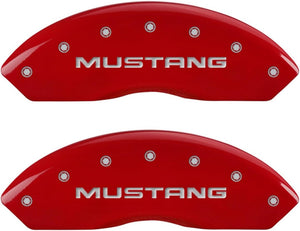 MGP 4 Caliper Covers Engraved Mustang 99-04 Pony Red finish silver logos (Set of 4) - 10095SMPYRD