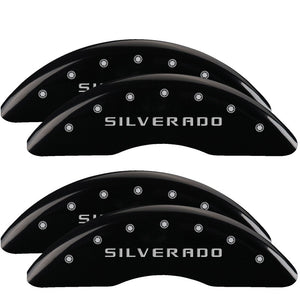 MGP 4 Caliper Covers Engraved Front & Rear Silverado Black finish silver ch - 14173SSILBK
