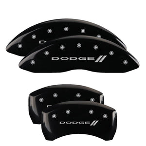 MGP 4 Caliper Covers Engraved Front & Rear With stripes/Dodge Black finish silver ch - 12181SDD3BK