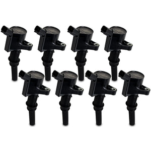 The basic requirements for a properly running engine are fuel, air, compression, and spark. Before increasing the power of your V8 or even V10, it is wise to ensure all maintenance is up to date and these processes are performing as intended. Weak spark from your ignition system can result in misfiring under high load driving and spark blow-out, which hinders performance. -- Mishimoto is proud to launch our new lineup of ignition coils, aimed at providing high-quality replacements that can bring your vehicle up to Stage 0 before moving on to horsepower adding modifications. Our ignition coils are designed and tested to meet or exceed OEM Ford performance standards and are available as a single coil or in sets of eight or ten. Once installed with a set of new spark plugs, one can expect a refreshed ignition system with improved engine startup, a smoother idle, and restored performance from your Ford Modular or Triton engine. The primary frame of our coils is constructed from extremely robust phenolic resin, ensuring optimal longevity in high temperature environments. The precision lower boot provides a barrier against moisture entry into the plug well, eliminating chances for spark plug contamination. In addition, our coils are pre-lubricated with dielectric grease to prevent corrosion and ensure an optimal connection between the spark plug and coil. -- Mishimoto ignition coils are an ideal replacement for worn or defective factory coils. As with all our products, these ignition coils include our signature Mishimoto Lifetime Warranty.