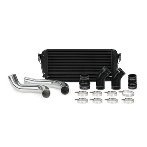 Mishimoto has released a performance intercooler kit for the 2013+ Dodge 6.7L Cummins. This kit includes everything you need to improve airflow, substantially decrease charge-air temperatures, reduce EGTs, and support your truck at any power level. The first key component is the Mishimoto 6.7L Cummins intercooler piping kit. Our engineers have maximized airflow by eliminating restrictive bends, allowing for smooth and unimpeded airflow. The piping is constructed of mandrel-bent 3" aluminum for smooth flow and rugged durability. Also included are Mishimoto silicone boots with DuraCore technology and Mishimoto Constant-Tension T-Bolt Clamps for accurate and consistent holding force.Mishimoto DuraCore technology comprises the innermost layer of all Mishimoto diesel silicone boots. Compared to normal silicone, DuraCore provides superior resistance to heat, pressure, fuel, and oil. This effectively increases the life of your boots and prevents leaks or blowouts.This package also includes the Mishimoto 6.7L Cummins intercooler. Extremely durable cast aluminum end tanks and a bar-and-plate core provide cool, dense air to your engine, with the reliability you need. With a 76.65% increase in external fin surface area, and a 37.8% larger core, this intercooler is proven to reduce intake air temps by 12.5%. All the components in this kit are engineered to last, just like your truck. Offered with either a Sleek Silver or Stealth Black core, the Mishimoto 6.7L Cummins intercooler kit, like all our Dodge Ram performance parts, is protected by the Mishimoto Lifetime Warranty. Whether your Cummins is stock or modified, trust Mishimoto and our line of Dodge Ram performance parts to keep your Dodge cool.