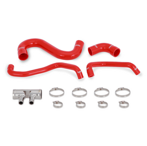 Upgrade your stock 2015 Mustang radiator hoses with the Mishimoto Mustang lower radiator hose kit to provide your Mustang GT with an advancement in both style and reliability. This kit includes the 4-piece silicone lower hose, as well as a CNC connector, and worm-gear clamps for ease of installation. Unlike the degradation-prone stock 2015 Mustang rubber hoses, every Mishimoto silicone hose is constructed from four layers of silicone with heat-resistant embedded fibers to provide unmatched durability, heat tolerance, and pressure tolerance. Whether you are racing your Mustang GT down the quarter mile or lapping at your next track day, trust Mishimoto with all your 2015 Mustang parts. This silicone hose kit is available in black, blue, or red and, like all our Mustang GT parts, includes the Mishimoto Lifetime Warranty.