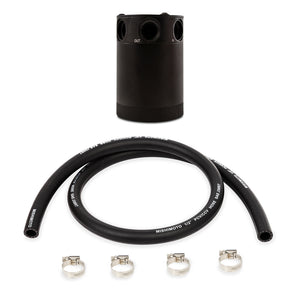 Mishimoto is proud to announce the release of our Compact Baffled Oil Catch Can, available in a two-port or three-port option. With years of oil catch can research and development time, Mishimoto has created the most effective compact oil catch can on the market. The Mishimoto Compact Baffled Oil Catch Can was designed to separate oil particles from the PCV/CCV air that would normally have just been routed back to your intake. The internal air diverter turbulates the air longer and ensures all the oil sinks to the bottom of the can, leaving nothing but clean air to pass through the 50 micron bronze filter to the intake. An internal baffle keeps the collected oil from splashing around under race conditions. This oil catch can features two ports, one inlet and one outlet, for easy installation on CCV and PCV systems. The 100% billet, 6061 aluminum can features 3/8" NPT threads at the inlet, outlet, and drain area and includes two black nylon fittings to make installation effortless. For maximum fitment options, the top mounting setup allows the can to be mounted from multiple angles. To make maintenance easy, the drain plug can be removed to allow for a return to the oil pan. The can is also 100% washable, unlike many other cans that require you to replace your filtration system.Our catch cans are different from most air-oil-separator (AOS) systems on a few levels. First, our catch cans are not heated. This means that all of the blow-by is able to condense in the can, including low-octane oil vapors and contaminated fuel vapors. Most AOS systems also drain the blow-by back into the oil pan, while our catch cans trap the blow-by and keep it out of the engine permanently. If you've seen what we've seen in the bottom of our catch cans, you won't want that draining back into your oil either.