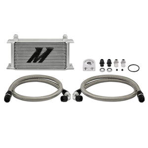 Enthusiasts who push their high-performance cars to the limit understand the importance of keeping their oil temperatures low to prevent damage, or even seizure of the engine.The Mishimoto Universal 19 Row Oil Cooler Kit will extend the life of your engine by ensuring your essential high-wear engine components such as piston rings, skirts and cam bearings are sufficiently lubricated with cooler oil.Included with the purchase of the 19 Row Oil Cooler Kit are high-quality, stainless steel braided hose lines and all necessary adapters for universal installation.