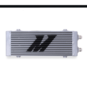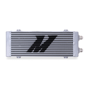 As anyone who?s spent some time on the track will tell you, one of the most important things to keep under control while pushing the limits of your vehicle is oil temperature. Oil that gets too hot will lose its viscosity, which is the very characteristic that makes it thick, slippery, and useful for lubrication. Adding a Mishimoto race oil cooler to your ride will ensure that your oil stays cool enough to do its job, extending the life of the high-wear components within your block and letting you focus not on keeping things cool, but taking home the checkered flag. Available in your choice of sleek silver or stealth black, this particular oil cooler features a dual pass core ? oil enters one side, travels around the core, and exits again on the same side. Ideal for most builds, Mishimoto?s medium-sized dual pass oil cooler will help keep temperatures in check while you shoot for the podium finish.