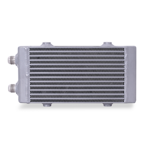 As anyone who?s spent some time on the track will tell you, one of the most important things to keep under control while pushing the limits of your vehicle is oil temperature. Oil that gets too hot will lose its viscosity, which is the very characteristic that makes it thick, slippery, and useful for lubrication. Adding a Mishimoto race oil cooler to your ride will ensure that your oil stays cool enough to do its job, extending the life of the high-wear components within your block and letting you focus not on keeping things cool, but taking home the checkered flag. Available in your choice of sleek silver or stealth black, this particular oil cooler features a dual pass core ? oil enters one side, travels around the core, and exits again on the same side. Ideal for tight situations, Mishimoto?s small dual pass oil cooler will help keep temperatures in check while you shoot for the podium finish.