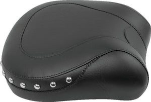 Mustang's Standard Touring Solo has a braided edge skirt that comes down over the frame and fender for a clean, uninterrupted look. The 14" wide driver bucket with slightly raised back keeps drivers planted comfortably. Available with or without a fully adjustable and easily removable built-in driver backrest, pair the solo with a matching passenger seat for comfortable 2-up riding. Recessed Passenger seats are designed for use with the built-in driver backrest.
