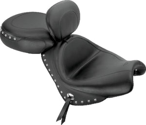 Mustang 02-08 Honda VTX1800 Retro, S ,T Wide Touring 2PC Seat w/Driver Backrest Studs - Black - 79340