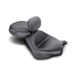 The deeply pocketed 17" wide driver seat sits you at the ideal cruising angle. The 12.5" wide passenger seat utilizes Mustang's unique internal steel support wings. All styles feature a skirt with braided edge trim. The driver's back is well supported by the nose of the passenger seat that extends forward to create a full 9" backrest, or via the available built-in driver backrest that's fully adjustable and easily removable without tools.