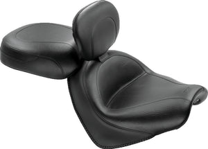 Available with or without a built-in fully adjustable and easily removable driver backrest, Mustang's Wide Touring solos feature a deeply pocketed 17" wide driver seat that provides ample support. Places the rider at a similar position to stock with extra width in the hip area for all-day comfort. The matching 12.5" wide passenger seat offers comfortable 2-up riding and extends forward for added driver back support on seats without the built-in driver backrest. Recessed Passenger seats are designed for use with the built-in driver backrest to allow full adjustability.