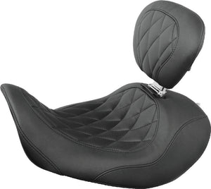 Take control of your ride! Mustang's Wide Tripper forward Solo moves the driver 1.5" forward to reduce the reach to the handlebars and foot controls. The 13" wide driver seat supports riders at the correct seating angle with extra width in the hip area for long-distance comfort. Available in black or distressed brown, in Original or Diamond Stitched styles, and with or without a built-in driver backrest that's fully adjustable and easily removable without tools.