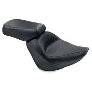 Mustang's 14" wide Standard Touring solo seat places the rider at a similar position compared to stock but features deep bucket styling to keep you comfortably planted in an ideal cruising angle. Choose from three different widths of passenger seats that extend forward for added driver back support.