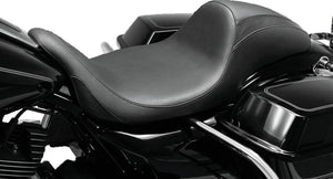 The HighTail Fastback is purpose-built for comfort, clean custom style, and keeping riders firmly planted in an aggressive riding position. This next-gen version of our original Fastback seat sits the rider slightly lower and further back than its predecessor, with a high-arching, tapered tail section that delivers exceptional back support. It's topped off with the highest quality expanded vinyl cover that combines detailed stitch work with smooth and perforated contrasting textures for a look unlike anything available. The tapered and sloped rear section is designed for short-distance 2-up cruising.