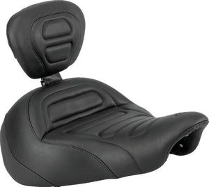 Turn your Rebel into the ultimate mile-eating machine with the Tripper Solo and matching Passenger Seat. The 12" wide driver area offers more room than stock with support across its entire width thanks to Mustang's proprietary controlled-density foam formula. Sits the rider at a similar reach to the controls and ground compared to stock, but the hand-formed bucket-style driver area is contoured to provide a feeling of sitting further "into" the motorcycle for improved comfort and control. The Tripper solo and matching passenger seat are both dressed in a high-quality expanded vinyl cover that offers the appearance of leather and durability to withstand the elements.