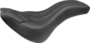 The Standard Touring seat for the Softail Street Bob is perfect for riders who like stock positioning but want a significant upgrade in styling and comfort. Available with or without a fully adjustable and easily removable driver backrest, the 15" wide driver bucket is 3" wider than stock and cut narrower at the nose so riders can easily plant their feet on the ground. The hand-stitch cover features Mustang's all-new "Cube" stitch pattern and contrasting blend of smooth and textured expanded vinyl for a unique custom look. Pair the solo with a matching 10.5" wide passenger seat for comfortable 2-up touring. Recessed Passenger Seat is designed for use with Standard Touring Solo with Driver Backrest.