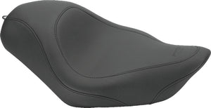 Available with or without a fully adjustable and easily removable driver backrest, Mustang's 15" wide Standard Touring Two-Piece Seat sits the driver at the ideal cruising angle in a similar position and reach to the controls compared to stock. On Two-Piece Seats without the driver backrest, the front of the passenger seat extends forward to create 8" of back support for the driver. The passenger sits comfortably in a 12" wide bucket that is supported by internal steel support wings to prevent sagging around the edges.