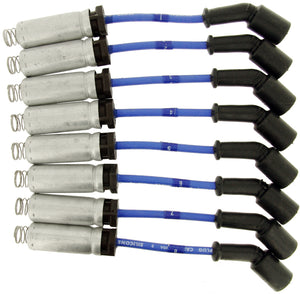 NGK ultra-low resistance mag core wire sets provide outstanding performance and durability. High-temp premium silicone outer jacket and inner EPDM/silicone insulation contain high voltage currents for excellent dielectric strength. Stainless steel winding over premium ferrite magnetic core delivers ultra-low resistance, a more powerful spark and excellent EMI/RFI noise suppression. OE or better specified spark plug and distributor boots ensure the highest quality fit, performance and durability in every application. Spark plug boots are glued to NGK cable with a silicone sealer for a watertight seal. Stainless steel terminals utilizing up to 3 serrated crimps bite into cable jacket and inner insulation for the highest terminal retention strength (wherever possible). Locking C-shaped spring clip with corrosion-resistant plating ensures a secure and positive spark plug terminal connection.
