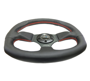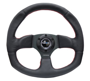 NRG Reinforced Steering Wheel (320mm Horizontal / 330mm Vertical) Leather w/Red Stitching - RST-009R-RS