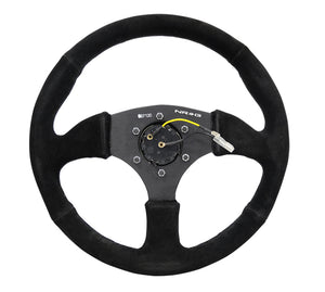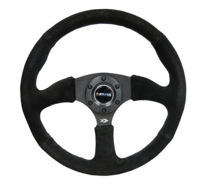 NRG Reinforced Steering Wheel (350mm / 2.5in. Deep) Blk Suede Comfort Grip w/5mm Matte Blk Spokes - RST-023MB-S