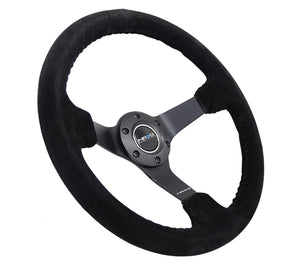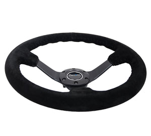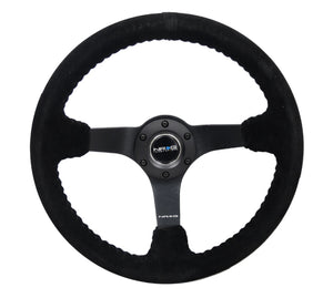 NRG Reinforced Steering Wheel (350mm / 3in. Deep) Blk Suede/Blk Bball Stitch w/5mm Matte Black Spoke