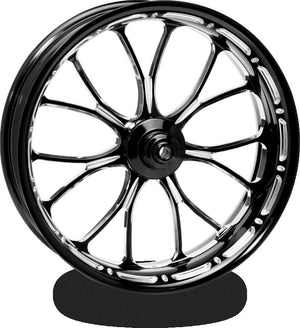 The Heathen wheel begins as 7 spokes and splits into 14 ornate tendrils before blending into the rim center and then follows with a complimentary design on the outer edge of the subtly curving rim face.