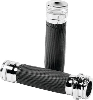 Performance Machine grips are the perfect finishing touch to any handlebar set up. The billet aluminum Vision Series Contour grips feature end mounted indicators with extremely bright yellow LED turn signals built in for maximum visibility. Each grip comes with super comfortable Renthal rubber and boasts some impressive details right down to the PM logo on the tip of each grip. These grips are designed to mount to 1 in. bars for cable throttle and electronic throttle applications with standard CAN Bus wiring systems.