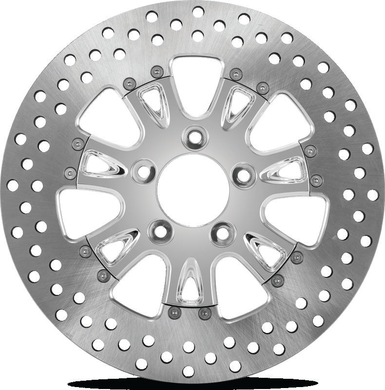Performance Machine offers brake disc's to match specific wheel designs. They feature a replaceable, high-grade 420 stainless steel outer band that resists galling and eliminates squealing. The inner carrier is machined from aluminum to match each resprective wheel design.