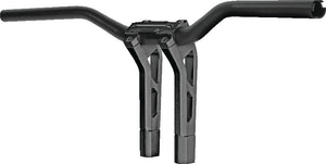 The Performance Machine Phatbar & Riser Kit comes complete with a Fly-By-Wire ready aluminum handlebar and a billet riser set that mounts to most H-D models. The bar features an 1.25 in. clamping area tapered down to 1 in. to accommodate stock H-D hand controls without any modifications.  Made from 7050-T6 aluminum with a 3 in. rise and slots for internal wiring. The risers feature a 9 in. rise and are made from 6061-T6 billet aluminum with either internal or external wiring options.