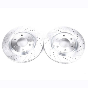 Power Stop drilled and slotted rotors provide a bolt-on upgrade for improved brake cooling and performance. Precision cross-drilled for maximum cooling and maximum performance during extreme conditions; rounded slots sweep away gasses, dust, and moisture to keep a clean friction contact patch on the rotor surface. Silver zinc dichromate plating resists rust and corrosion. With a direct OE fit, there are no special modifications needed.